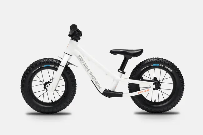 Kids Ride Shotgun may just have released the raddest balance bike around! We're talking chunky Vee Tire Co rubber, a Magura hydraulic disc brake and compatibility with dual wheel sizes, allowing an on-trend mullet set-up with super-slack head angle!