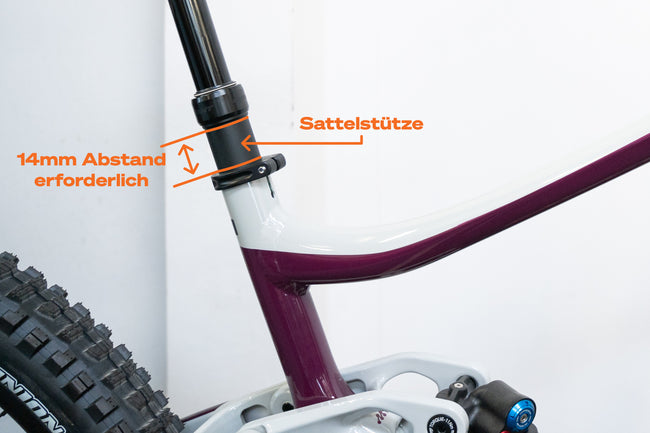 Um den Pro Sattel an deiner Sattelstütze zu befestigen, benötigst du 14 mm des verfügbaren Platzes in der Sattelstütze.