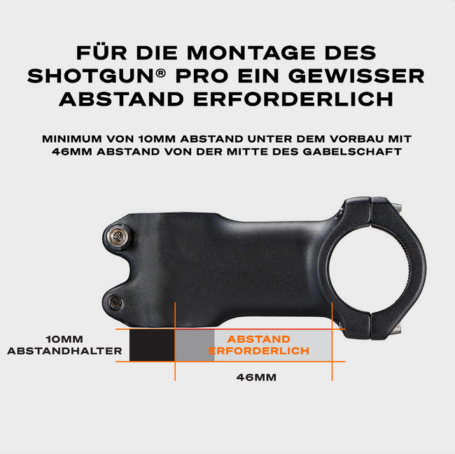 Um die Shotgun Pro Vorderklemme unterzubringen, muss dein Vorbau 50 mm lang sein.
