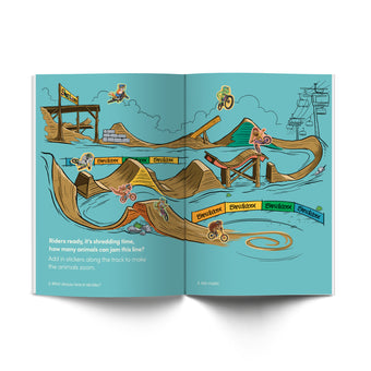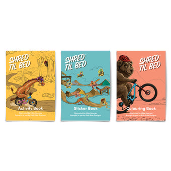 Unser Shred Til Bed MTB Activity Pack ist das ultimative Indoor-Erlebnis für dein Mountainbike-Kind. Slopestyle-Sticker-Wettbewerbe, Trail-Labyrinthe und eine Reihe von Aktivitäten zum Thema MTB halten dein Kind auf Trab, wenn es nicht raus kann, um die Singletrails unsicher zu machen.